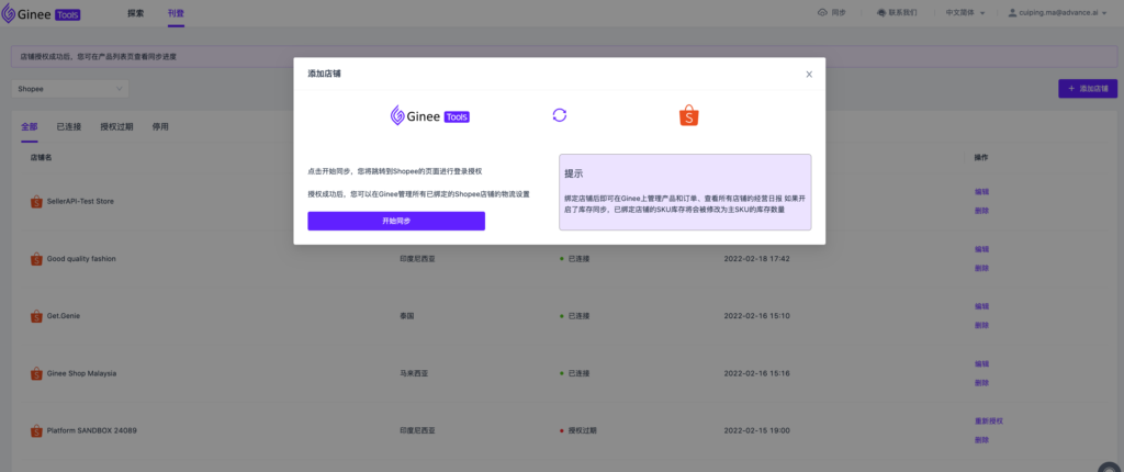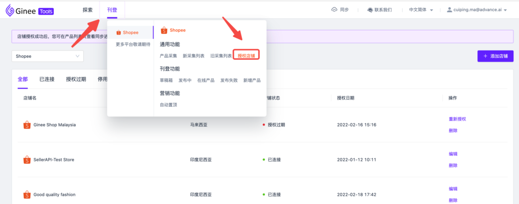 一、如何在ginee tools授权店铺?