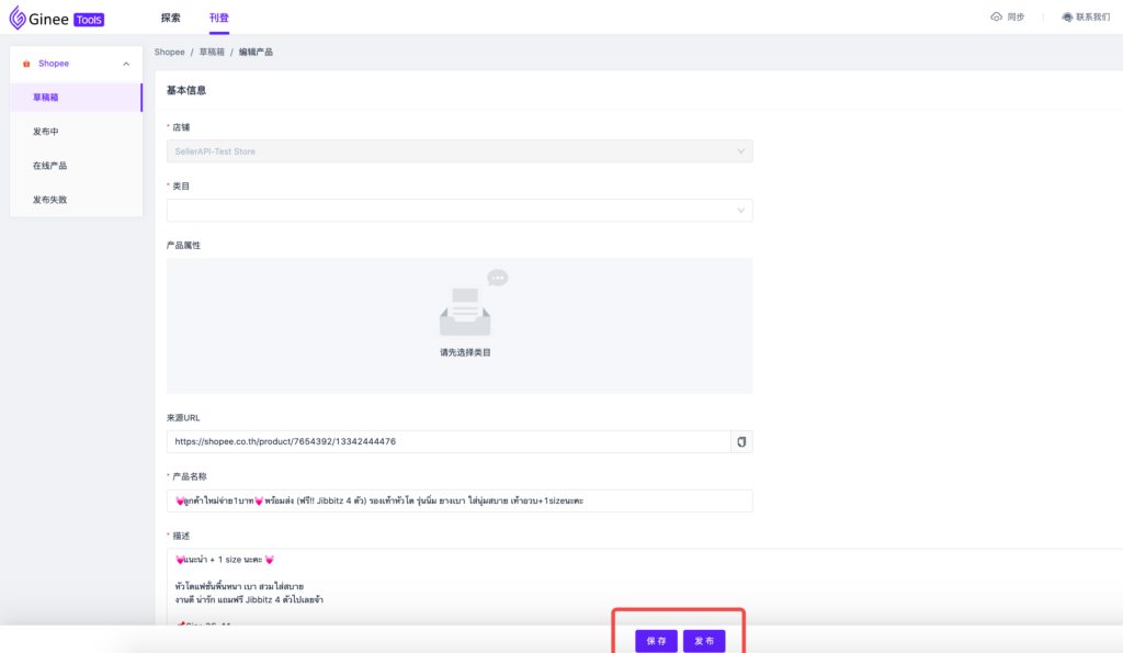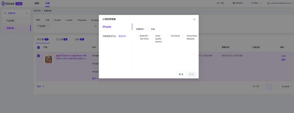 相比ERP,ginee tools的刊登流程更加简洁明晰,对于中小卖家来说,他们不再需要创建主商品、绑定库存,就可以将采集来的产品认领到草稿箱,直接编辑产品信息并发布至平台店铺,节省了产品上架时间并大大提高了刊登效率。