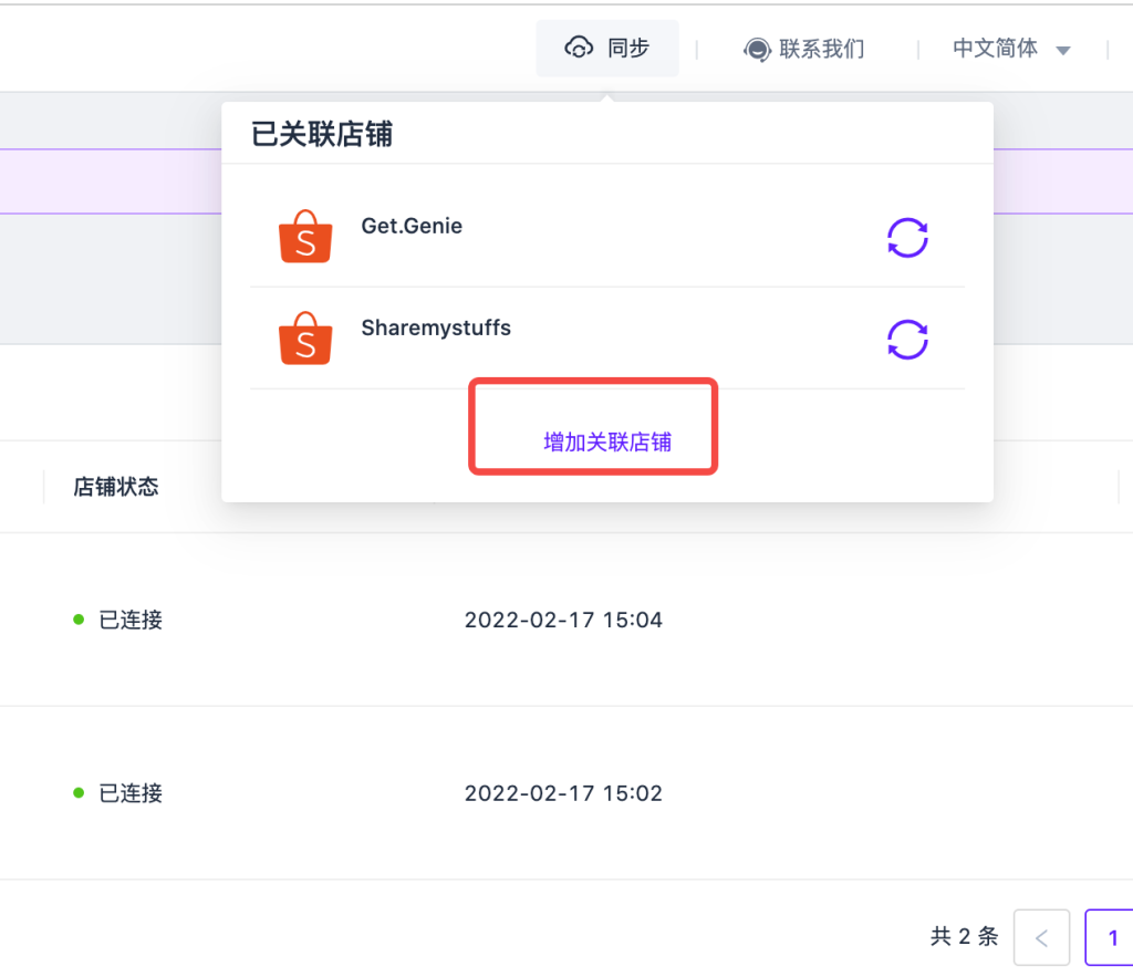同步——增加关联店铺