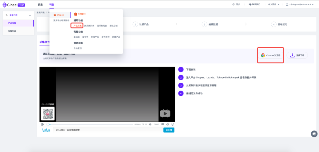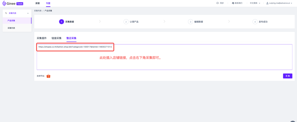 二、如何在ginee tools采集产品?