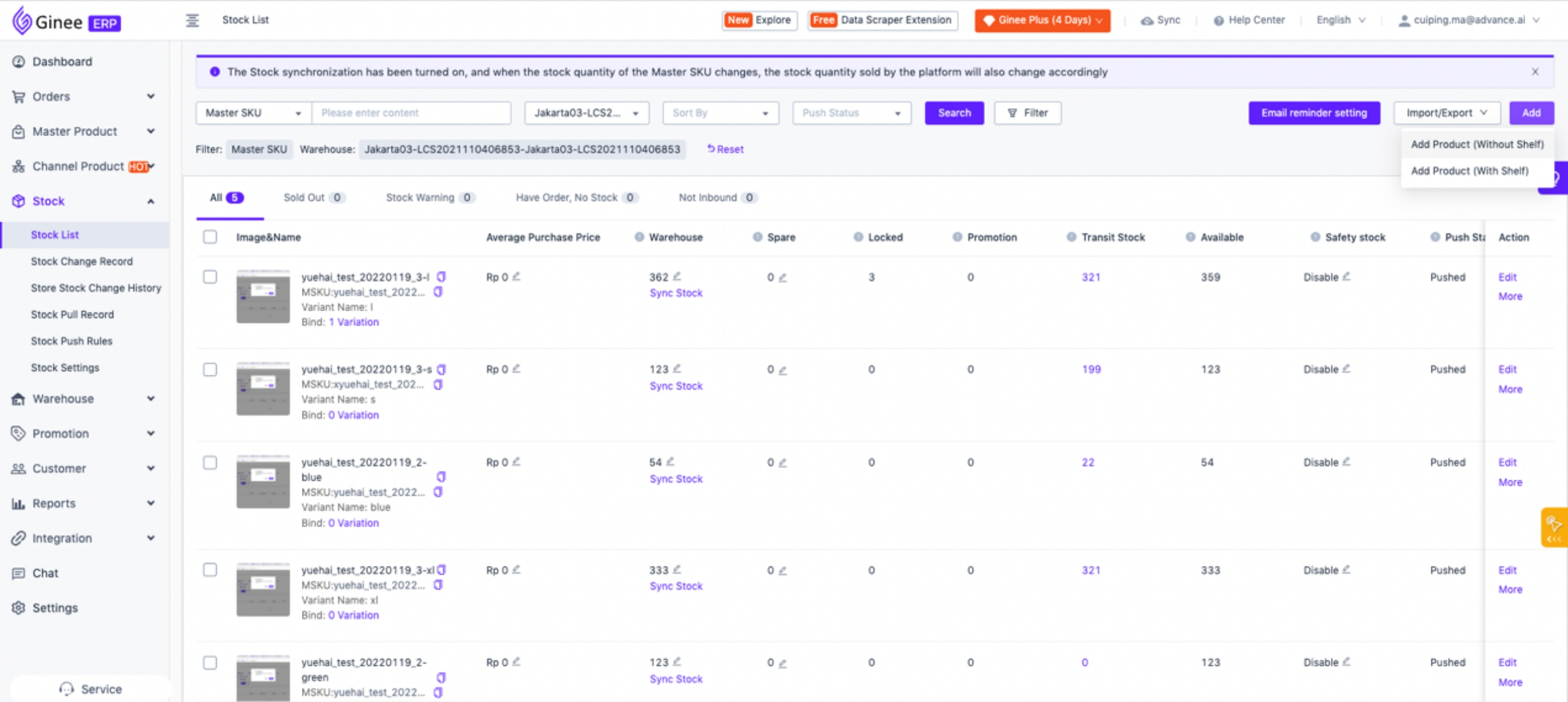 建议商家与shipper的客服沟通,在线下完成商品入库。在线下将商品入库到shipper仓库后,商品会自动同步到ginee的系统中,商家可在库存清单中查看已入库数据