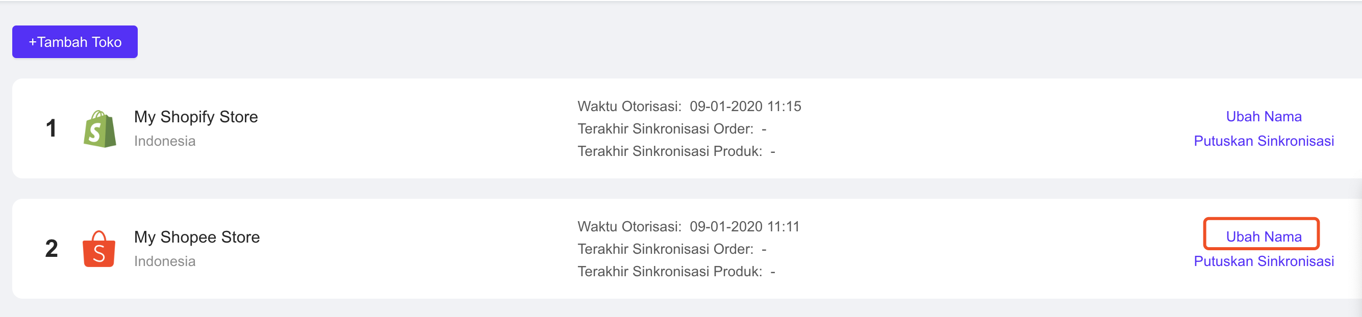 可以在“绑定”列表中查看所有绑定商店,并且可以更改商店名称,以便您在同一渠道中绑定多个商店时,能够轻松区分。