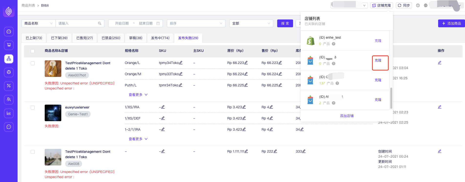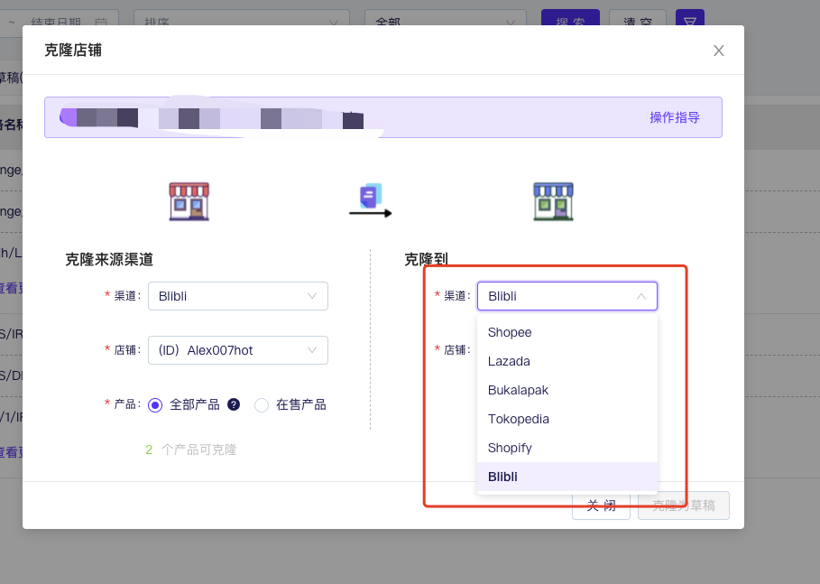 现已支持Shopee、Tokopeida、Bukalapak、Shopify、Blibli的店铺克隆。